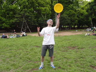 空中にディスクを上げ、再び拾うまでの間に、自分がクルクルとターンします。ターンの数が多ければ多いほどすごいです。